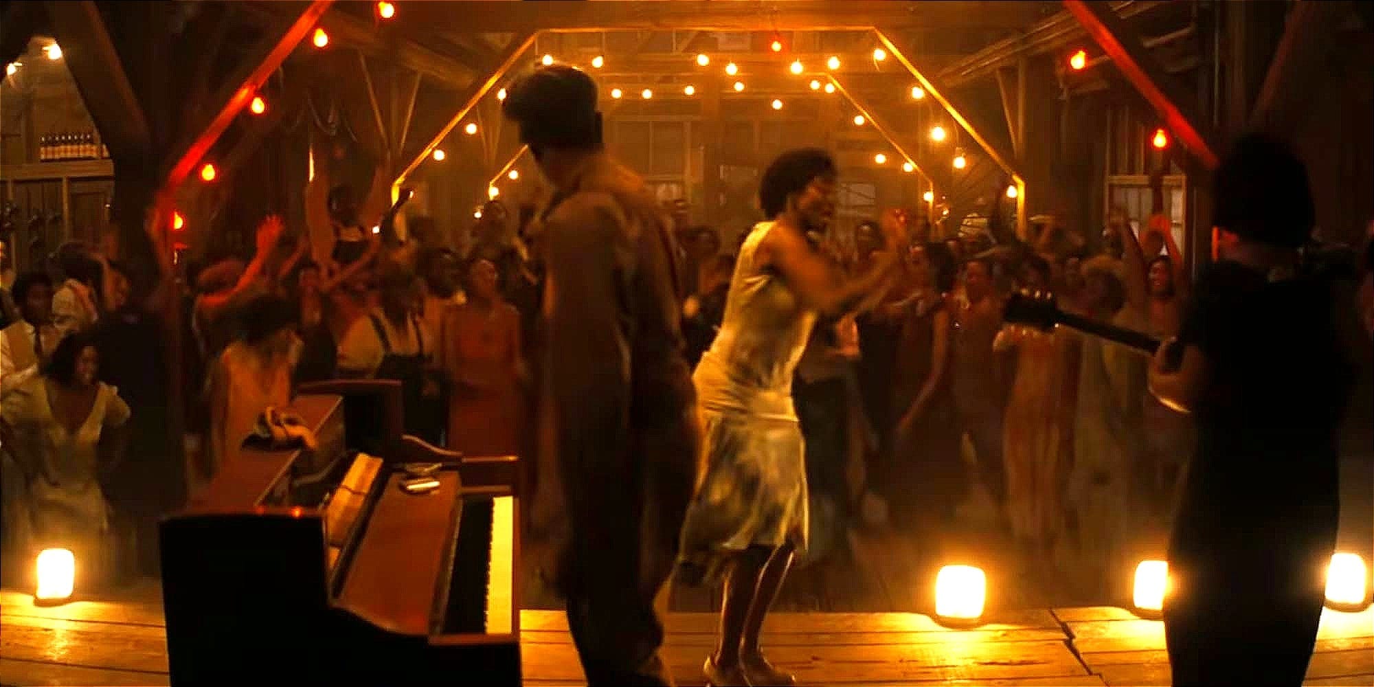 And it gets better. Firebrand Coogler outdoes himself in a sequence that transcends time and space, blending blues, jazz, funk and hip-hop into a swirling set piece in which musical giants of the ages come out to party. In the rickety barn Smoke and Stack have transformed into a church dedicated to the gods and monsters of sound, a turntable appears ready for scratching. Look, over here, it’s Jimi Hendrix shredding his guitar. And over there are breakdancers gyrating to their own tribal beat. The rhythm and the pulsating bodies are so hot the screen literally bursts into flames. How could it not? One word: euphoria.